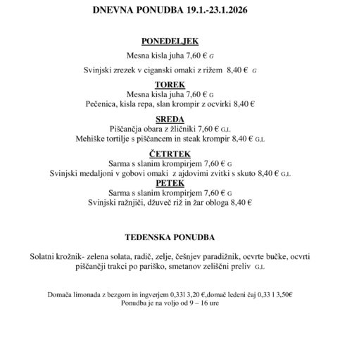 Objavljeno JEDILNI LIST Dobrodošli Gostilna s prenočišči ” Pri Janezu”Zg. Ložnica 42316 Zg. Ložnica 00386 41 770 955www. prijanezu.comNahajate se na Zg. Ložnici pri Slov. […]