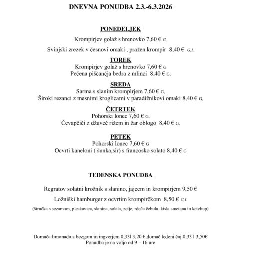 Objavljeno Obratovalni čas Ponedeljek – petek 9.00 – 22.00Sobota 11.00 – 22.00Nedelja in prazniki ZAPRTO KOLEKTIVNI DOPUST 23.7.2023 – 6.8.2023 V času kolektivnega dopusta so […]